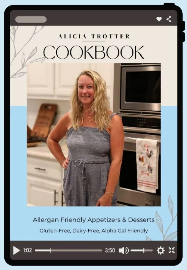 I’m Your Alpha Gal” cookbook by Alicia Trotter is a great resource for those with allergies and even diabetes. In our house we especially like the chocolate waffles and chocolate chip cookies because my husband’s blood sugar numbers stay down when eating them. Other favorites are Breakfast Pizza, Egg Salad, Potato Soup, and Salmon Patties. Can’t wait to try more of the recipes!